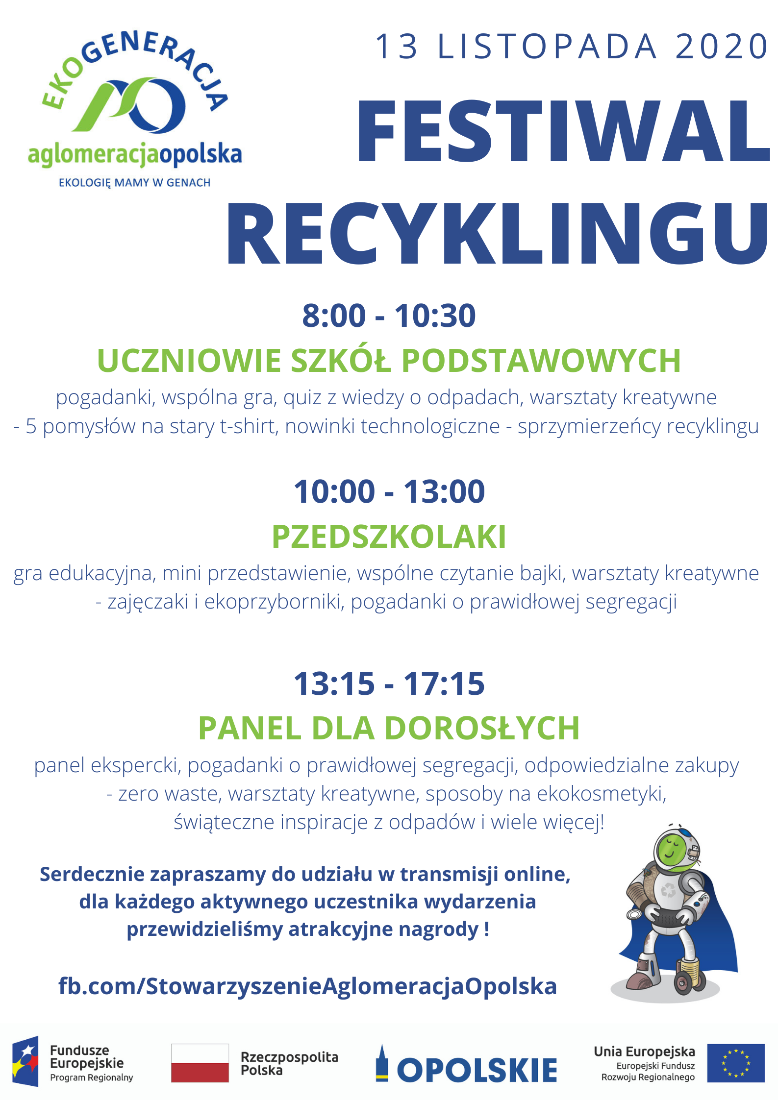 FESTIWAL RECYKLINGU odbędzie się w piątek, 13 listopada 2020 roku, od godziny 8:00 na żywo na platformie Facebook.